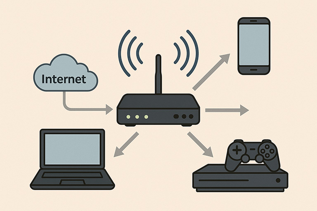 Маршрутизатор принимает интернет-сигнал от модема или провайдера и распределяет трафик между всеми устройствами в доме. Он работает по таблицам маршрутизации — это как карта, по которой роутер выбирает самый быстрый и стабильный путь для каждого пакета данных.